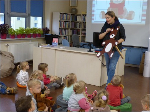 Z powodu niesprzyjającej pogody dzień Pluszowego Misia z Filii nr 28 przeniósł się do Przedszkola nr 57. Dzieci z zaciekawieniem oglądały różne książki o misiach, opowiadały o swoich ulubionych pluszakach a następnie z wielkim zainteresowaniem wysłuchały dwóch książeczek z misiami w roli głównej: "Jak dobrze mieć sąsiadów" C. Flood oraz "Misza i Grisza ratują świat" A. Stasiak. Na zakończenie zaśpiewały misiową piosenkę i zaprezentowały przygotowane z tej okazji wierszyki.