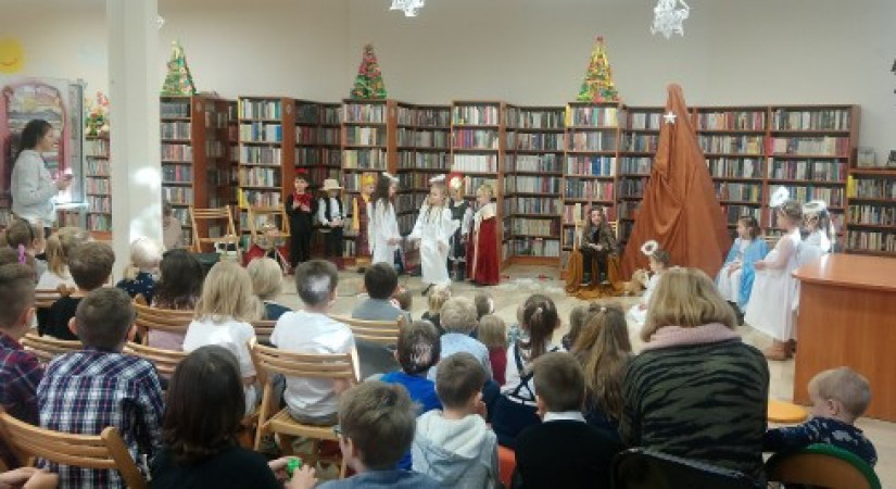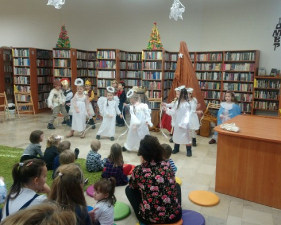 Przedszkolaki „Dzieciaki.pl” zawitały 18 grudnia w Filii nr 37 z przedstawieniem jasełek. Widzami były dzieci z pobliskich przedszkoli, uczniowie ze Szkoły Podstawowej nr 4 w Lublinie oraz czytelnicy Filii nr 37. Mali aktorzy starali się jak najpiękniej odegrać swoje role, wczuwali się w grane przez siebie postacie, recytowali wiersze. Spektakl zakończono wspólnym śpiewaniem kolędy „Dzisiaj w Betlejem”, która w interpretacji dzieci brzmiała niepowtarzalnie i wyjątkowo. Wszyscy z zadowoleniem nagrodzili młodych artystów gromkimi brawami!