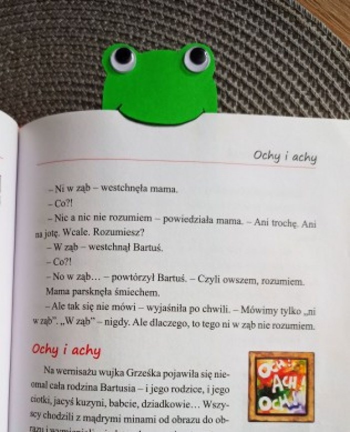 Bardzo ucieszyła mnie kolejna książka ulubionej autorki moich córek Katarzyny Borys „Łaty na fotelu”. W trudnym czasie dla nas wszystkich, w okresie pandemii zastanawiałam się jak umilić córkom wolne chwile od nauki. Czy można przeżywać fascynujące przygody bez wychodzenia z domu? Na pewno, biorąc pod uwagę potęgę dziecięcej wyobraźni i umiejętność uczynienia z najprostszych rzeczy czegoś co pochłonie uwagę na kilka godzin. Moim panaceum stała się ciepła i pełna humoru lektura książki. Główni bohaterowie rodzina Łatów, na którą składają się rodzice i czworo dzieci odwiedzają sklep ze starociami, w którym pracuje tajemniczy sprzedawca. Po wielu dywagacjach kupują stary pluszowy fotel, zegar z kukułką oraz staroświecki domek dla lalek. Pojawienie się tych przedmiotów w domu z pozoru przykurzonych i starych sprawia, że ferie rodzeństwa w domu zapowiadające się nudnie, będą niezapomniane i pełne atrakcji. magia, która tkwi w nich sprawia niezwykłą podróż i przygody w innym wymiarze. Bohaterowie powieści w nieznanym świecie zaprzyjaźnili się z jego mieszkańcami i nauczyli się czegoś ważnego. Na przykład, że warto się dzielić mimo wielu wyrzeczeń, pokonywać strach i pomocy innym. Akcja książki toczy się wartko, wątki fantastyczne przeplatają się z realistycznymi, a uroku dodają ładne ilustracje. „Łaty na fotelu” to świetna rodzinna opowieść, która wciągnie niejednego czytelnika.