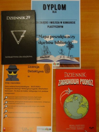 Podczas tegorocznych wakacyjnych zajęć zorganizowanych przez Filię 34 dzieci zostały zaproszone do Klubu Detektywów, gdzie wraz z detektywami z literatury dziecięcej i młodzieżowej zdobywały umiejętności niezbędne w profesji detektywa. Wśród wielu zadań, zagadek i łamigłówek uczestnicy zajęć m.in. zrobili słynną kraciastą czapeczkę Holmesa, niezbędny notatnik detektywa, poznali recepturę na niewidzialny tusz, przesłuchiwali świadków i sprawdzali ich alibi oraz rysowali portrety pamięciowe podejrzanych. W ramach wakacyjnych zajęć Filia 34 przygotowała dla dzieci konkurs plastyczny „Mapa poszukiwaczy skarbów biblioteki”. Na zakończenie wakacji laureaci konkursu zostali nagrodzeni a każdy uczestnik otrzymał pamiątkową licencję detektywa.