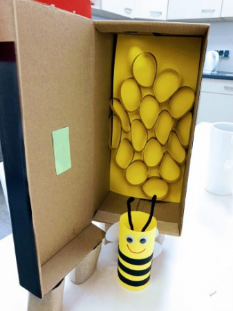 Po teoretycznym wprowadzeniu następowała część plastyczna, podczas której zostały wykonane: pszczoła, ul, kapelusz pszczelarza oraz plaster miodu. Wszystkie filmy video są dostępne bezterminowo na profilu facebook'owym Biblio.