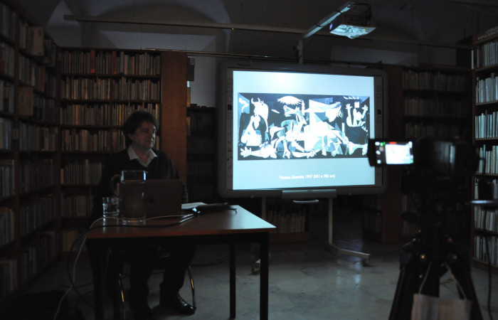 „Guernica Picassa w gabinecie (krzywych) luster” to wykład dr. Marcina Pastwy, który 13 października, w Filii nr 2 wygłosił w ramach cyklu „Dzieło sztuki jako zwierciadło historii”.