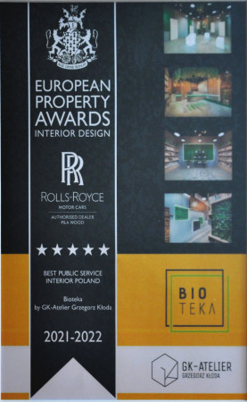 Tym razem wygrała w kategorii najlepsze wnętrze publiczne w polskim etapie konkursu European Property Awards 2021-2022 zdobywając najwyższy możliwy wynik 5 gwiazdek. Tym samym przeszła do kolejnego etapu i będzie reprezentowała Polskę na arenie międzynarodowej. Wyniki z etapu europejskiego poznamy pod koniec lutego.