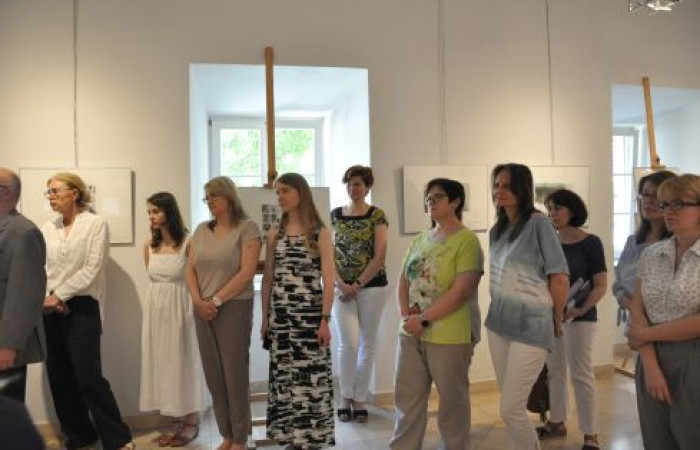 Na zdjęciu uczestnicy wernisażu podczas prezentacji wystawy