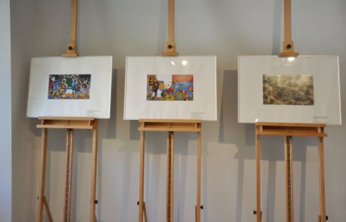 Trzy wyróżnione w konkursie ilustracje prezentowane na wystawie