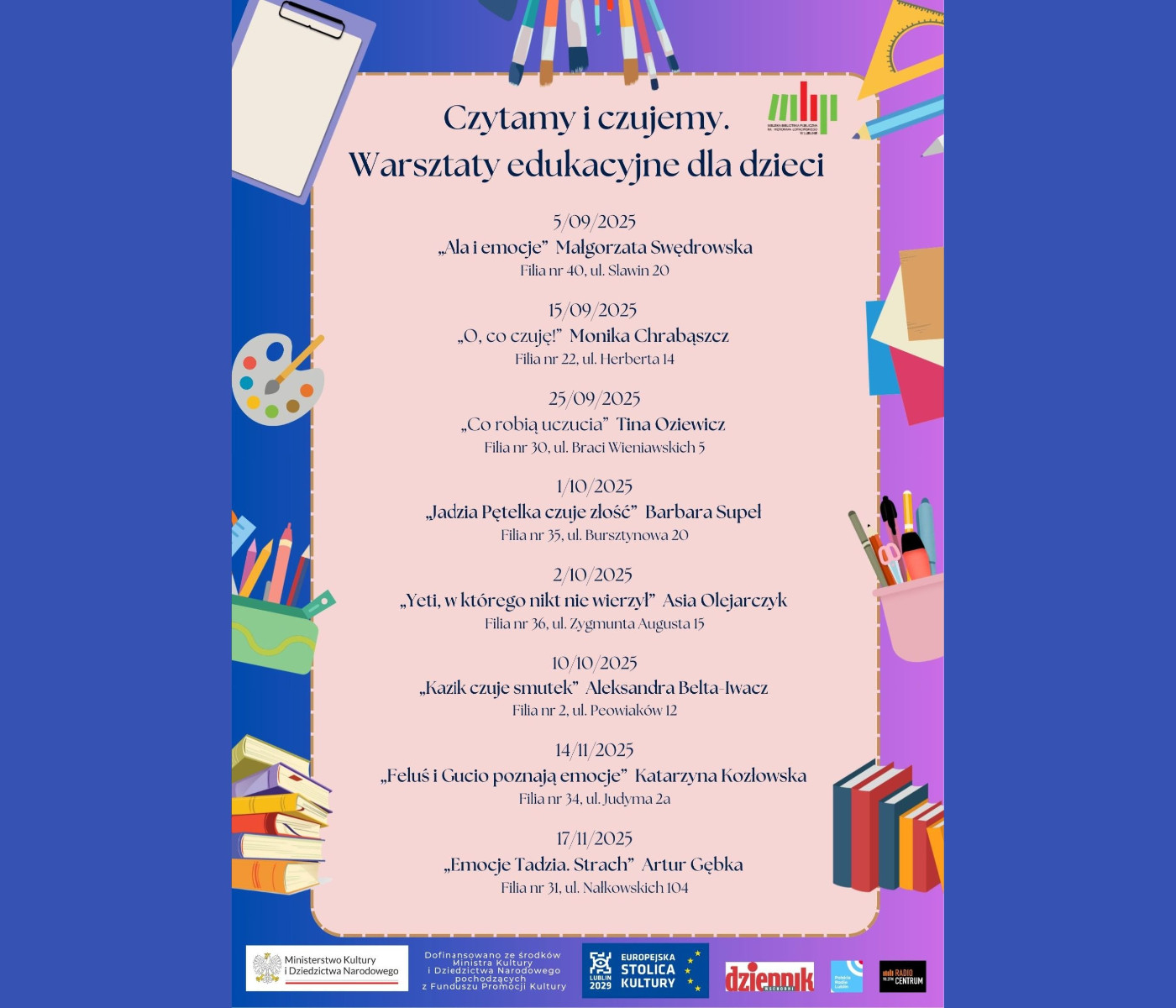 Z radością informujemy, że projekt „Czytamy i czujemy. Warsztaty edukacyjne dla dzieci”, zgłoszony do programu Partnerstwo dla książki, otrzymał dofinansowanie Ministerstwa Kultury i Dziedzictwa Narodowego.
