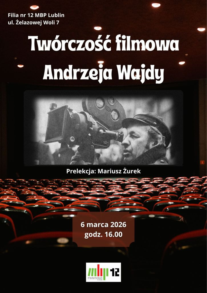 Filia nr 12 MBP Lublin (ul. Żelazowej Woli 7) zaprasza na wykład poświęcony Patronowi roku 2026 - Andrzejowi Wajdzie. Prelekcję wygłosi Mariusz Żurek.