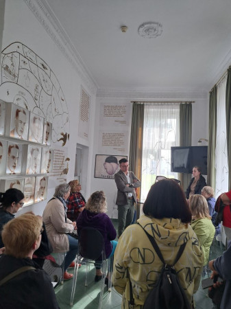 Nas Gombrowiczem próbował opętać dr Robert Utkowski, który oprowadzając po stałej wystawie z ogromną pasją i znajomością tematu przybliżył nam życie, twórczość i tułaczkę mistrza zrywania masek jak zwie się autora Operetki, uznawanego za jednego z najwybitniejszych pisarzy polskich XX wieku.
