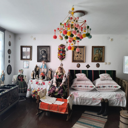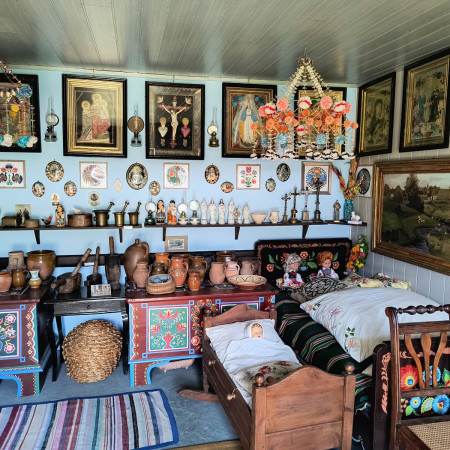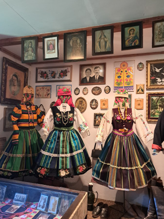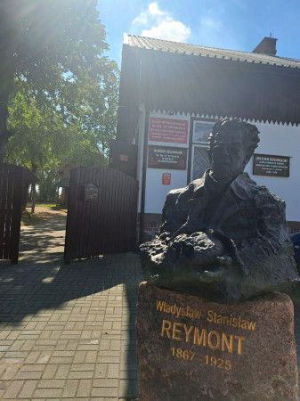 Dlatego też pierwszym przystankiem na trasie naszego wyjazdu było Muzeum Regionalne im.Wł. St. Reymonta w Lipcach Reymontowskich, gdzie w zabudowaniach dawnej manufaktury włókienniczej rodziny Winklów wysłuchaliśmy ciekawego wykładu na temat historii i kultury materialnej Lipiec, poznaliśmy życiorys naszego bohatera i mogliśmy obejrzeć związane z nim pamiątki. W tej samej miejscowości odwiedziliśmy także Galerię Staroci i Pamiątek Regionalnych, prowadzoną przez Pana Zbigniewa Stania, kolekcjonera eksponatów kultury ludowej związanej z folklorem Księstwa Łowickiego. Ciekawą kolekcją Pana Zbigniewa są Reymontiana – zbiór wydań Chłopów, opracowania, artykuły związane z powieścią, wpisy do kronik oraz autografy aktorów występujących w filmie Chłopi.